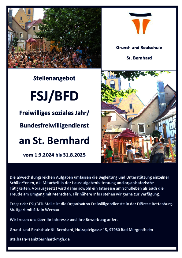 Freiwilliges Soziales Jahr (FSJ) an der Schule St. Bernhard