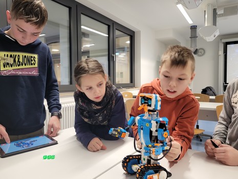 Als Förderprojekt des Freundeskreises erleben bereits die Grundschüler des "Sanktus" in Kooperation mit der Realschule den Einstieg in die Programmierung. In spielerischer Weise führen die Lehrkräfte die jungen "Ingenieure" an die Materie im Rahmen der MINT initiative heran, indem sie mit LEGO Baukästen Roboter bauen und diese anschließend selbständig programmieren. Hierbei wurden die Grundschüler von Schülerpaten aus der Klassenstufe 8 der Realschule St. Bernhard mit Sr. Mara im Physiksaal begleitet. "Eine tolle Initiative, die Austausch, Kooperation und Nähe zu den Schülern beider Schulen erlebbar macht", so Stefanie Scheidel Vertreterin der Schulleitung-GS. Ebenfalls vor Ort war zur Unterstützung Tobias Schwing, engagierter Vater einer Grundschülerin und Vorsitzender des Freundeskreises. Die Bilder sprechen für sich: Spannung, Neugier und Talent trafen auf einander.