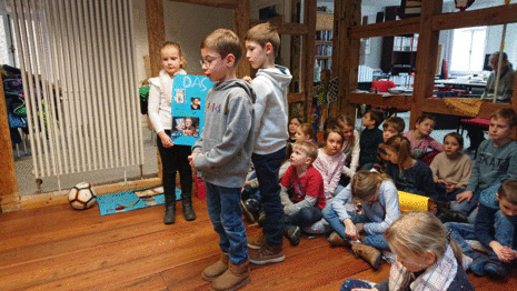 Jedes Kind entschied sich schließlich für ein Buch, um es der Klasse zu präsentieren. Der Höhepunkt der Vorstellungen war dann die Lesekofferübergabe bei Moritz und Lux. Die Drittklässler übergaben den Koffer an eine andere dritte Klasse und stellten ihre Lieblingsbücher noch einmal in der Buchhandlung vor.